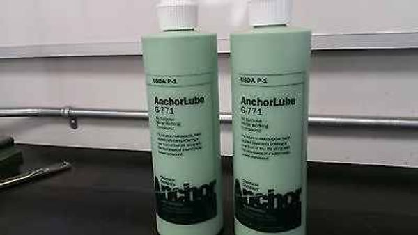 Anchor Lube G-771, an all-purpose, hand-applied metalworking lubricant that works on all metals and is specifically formulated for hard metals and tough jobs. It also contains no oil and is environmentally safe.